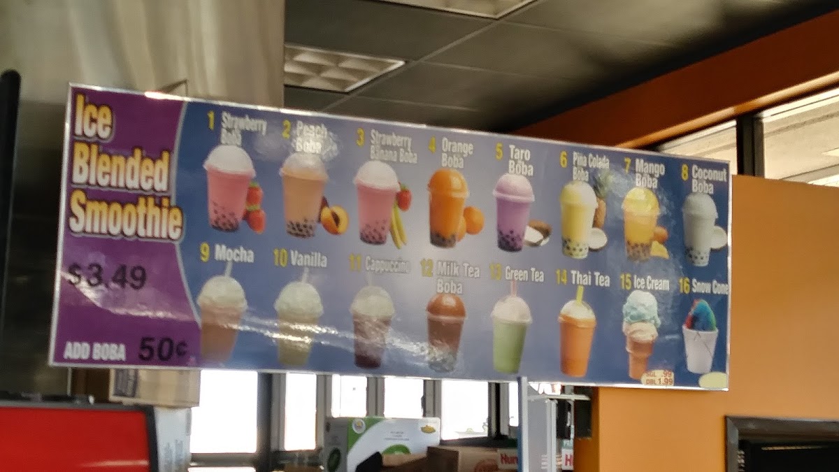 Freshly brewed green tea blended with milk, creating a smooth and refreshing smoothie experience.